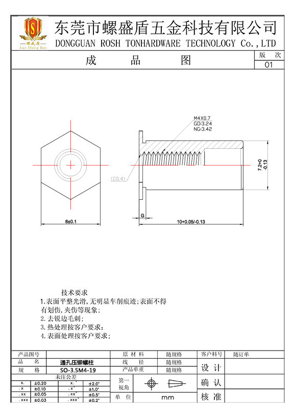 SO-3.5M4-19 壓鉚螺母柱