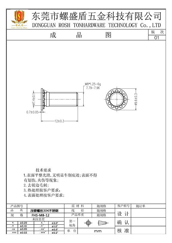 壓鉚螺絲304不銹鋼公制