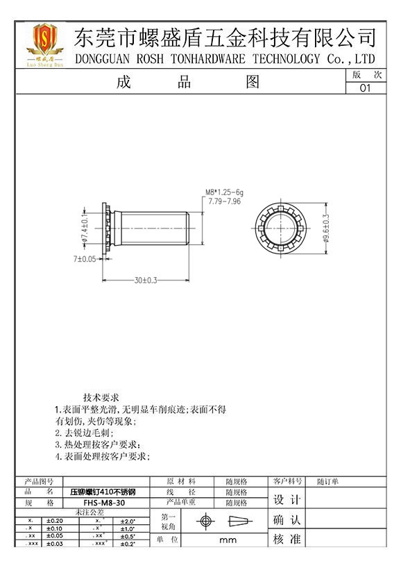 壓鉚螺絲410不銹鋼公制
