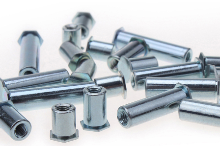 壓鉚螺母柱,通常也稱壓鉚螺柱或螺母柱,是應(yīng)用于鈑金、薄板、機箱、機柜的一種緊固件。壓鉚螺母柱其外形一端呈六角形,另一端為圓柱狀,六角邊與圓柱狀中間有一道退刀槽,其內(nèi)形為內(nèi)螺紋,通過壓力機將六角頭壓入薄板的預(yù)置孔內(nèi)(預(yù)置孔的孔徑一般略大于壓鉚螺柱的圓柱外徑)使孔的周邊產(chǎn)生塑性變形,變形部分被擠入壓鉚螺母柱的退刀槽內(nèi),使壓鉚螺母柱鉚緊于薄板上,從而在薄板上形成一下有效固定的內(nèi)螺紋美觀而且牢固 。同時,我們響應(yīng)全球環(huán)保要求,原材料和表面處理都符合歐盟ROHS要求。
