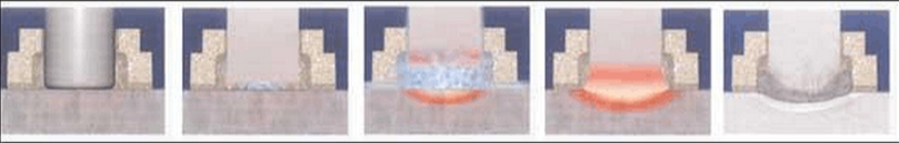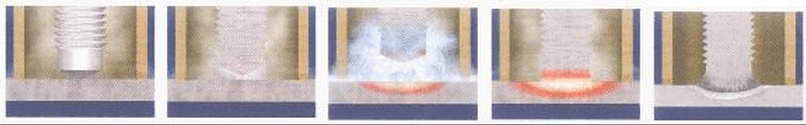 是一種最常用的電容儲能螺焊柱接方法(從下圖0.001秒開始工作)