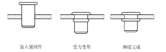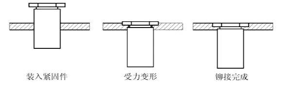 拉鉚螺母的壓接過程如圖所示: