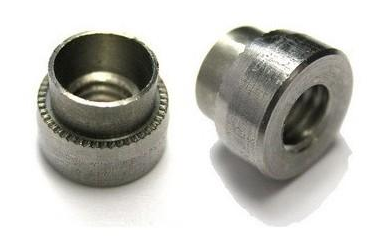 壓鉚螺母是通過壓花齒壓入鈑金的預(yù)置孔位,一般而言預(yù)置孔的孔徑略小于壓鉚螺母的壓花齒,通過壓力使壓鉚螺母的花齒擠入板內(nèi)使導(dǎo)致孔的的周邊產(chǎn)生塑性變形,變形物被擠入導(dǎo)向槽,從而產(chǎn)生鎖緊的效果。
