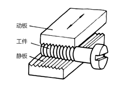 使用搓牙機制造螺紋,搓牙機工作原理是牙板上加工斜齒紋,齒距等于要得到螺紋的牙距.齒紋的角度等于螺紋的牙升角,將加工件放在兩牙板中間加上等于牙高的力距,進行搓動,就可以加工所需要的螺紋形狀。