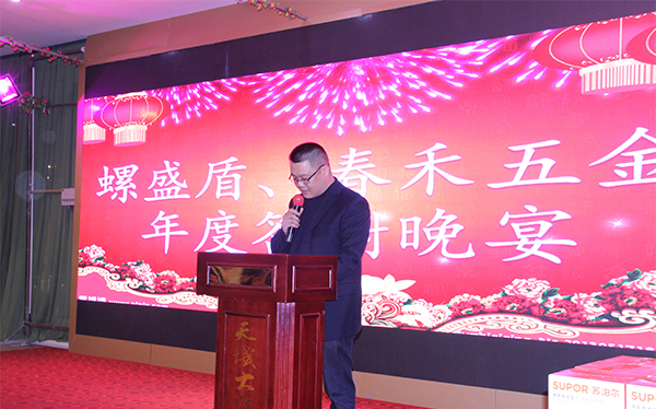 晚上7點(diǎn),年會(huì)正式拉開帷幕,首先由螺盛盾五金科技有限公司齊秀永總經(jīng)理發(fā)表致辭,他說道,過去的2017年,在全體員工的共同努力下,公司各方面工作取得了滿意的成效。在新的一年里,要以市場為導(dǎo)向、以合理的管理為紐帶、提高公司知名度、集中打造螺盛盾品牌形象。面對新的挑戰(zhàn),螺盛盾要上下團(tuán)結(jié)一心,迎接挑戰(zhàn);全體員工要蓄勢待發(fā),開創(chuàng)新局面!