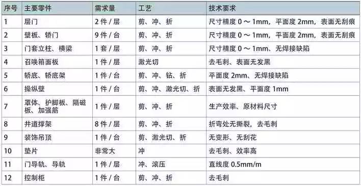 電梯鈑金件的基本加工工藝與其他鈑金件相同,是以剪切、沖壓、折彎和連接為主要成形工藝。下面簡(jiǎn)要介紹電梯鈑金件的工藝特征與技術(shù)要求。