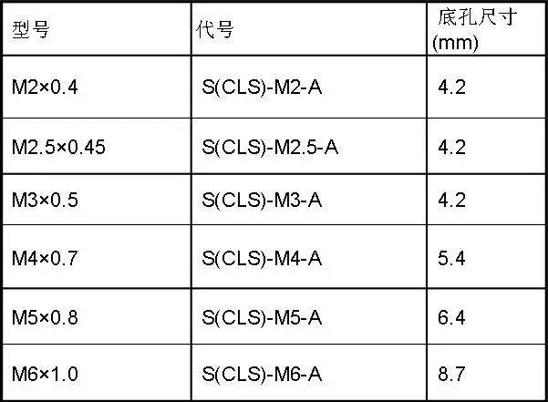 注:CLS為不銹鋼材料,S為普通A3鋼,A為螺母適用板厚材代號。