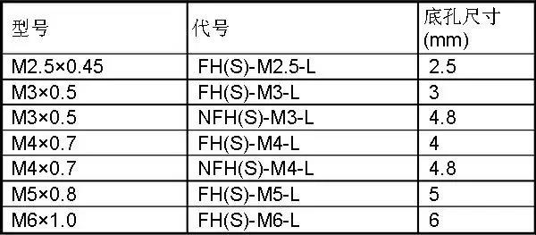 注:加S為不銹鋼材料,F(xiàn)H為圓頭,NFH為六角頭,L為螺釘總長度。