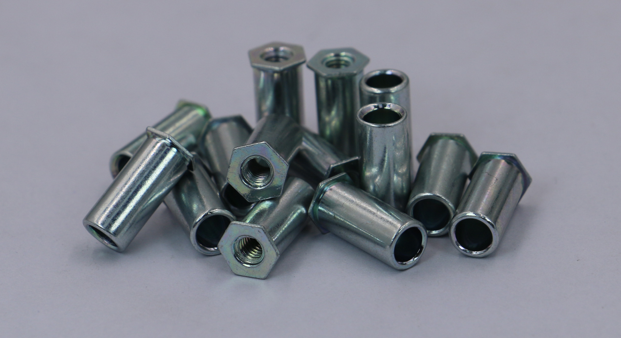 7、通孔螺母柱長(zhǎng)度10mm以下皆為滿絲,在10mm以上可六角端面方(Ⅰ型)或圓端面方面擴(kuò)孔(Ⅱ型) 壓鉚螺柱開(kāi)孔尺寸、壓鉚螺母柱