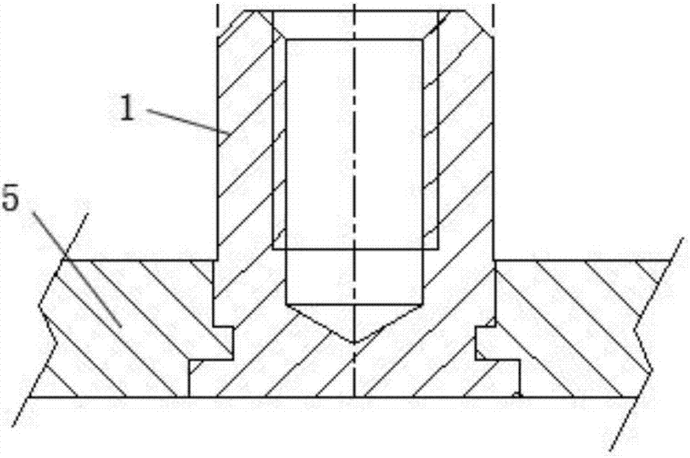 在鈑金和鋁型材加工中需要用到很多壓鉚螺母柱。但現(xiàn)有的壓鉚螺母柱在壓鉚時與被壓板材間一般都采用間隙配合,這種配合對一般要求的壓鉚是沒有影響的,但對表面質量要求很高的鋁型材,尤其是噴漆鋁型材會有一定影響,一是由于鋁型材上的壓鉚底孔一般在普通沖床上加工,這樣會產生一個帶喇叭的錐孔,這樣更加加大了壓鉚螺母柱之間的間隙,使相互的包緊力更小,造成有的鋁型材組件在裝螺釘時壓鉚螺母柱松動,造成表面質量不合格,因此,我們需要一種能減少與鋁型材壓鉚底孔的配合間隙的壓鉚螺母柱,以增加壓鉚螺母柱與鋁型材孔之間的包緊力。