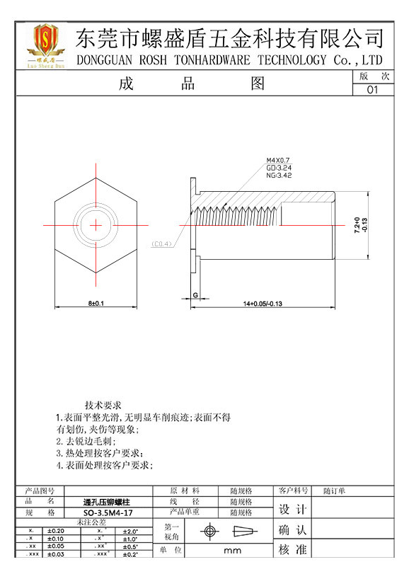 SO-3.5M4-17 壓鉚螺母柱