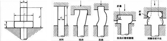 當長徑比過大(≥3.5),在鐓鍛時毛坯會產(chǎn)生失穩(wěn),開始出現(xiàn)縱向彎曲折疊,變形后出現(xiàn)頭部偏心。