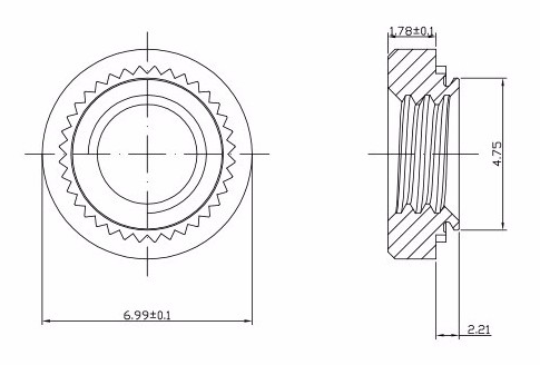 其原理是通過壓花齒壓入鈑金的預(yù)置孔內(nèi),一般而方預(yù)置孔的孔徑略小于壓鉚螺母的壓花齒,通過壓力使壓鉚螺母的花齒擠入板內(nèi)使導(dǎo)致孔的的周邊產(chǎn)生塑性變形,變形物被擠入導(dǎo)向槽,從而產(chǎn)生鎖緊的效果。